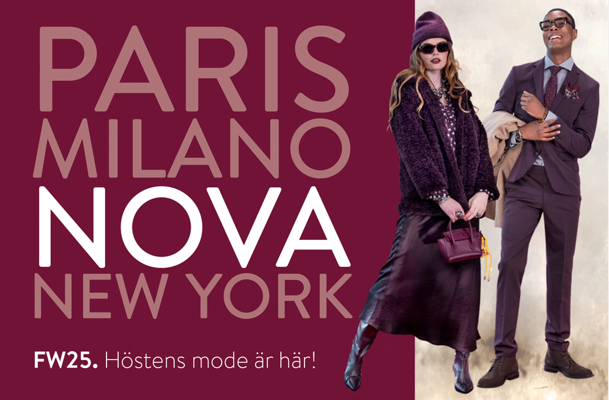 Inspireras av Paris elegans, dröm dig bort till Milano och låt dig svepas med av New Yorks energi – men hitta allt på Nova. Höstens mode bjuder på burgundy i centrum, omfamnat av tidlösa nyanser i beige och brunt, med fräscha inslag av denim och djurmönster. Här möts trenderna i en stilfull mix som gör Nova till säsongens självklara modedestination. Oavsett om du söker catwalk-känsla, vardagsstil eller statement-plagg är Nova din destination för höstens mode.